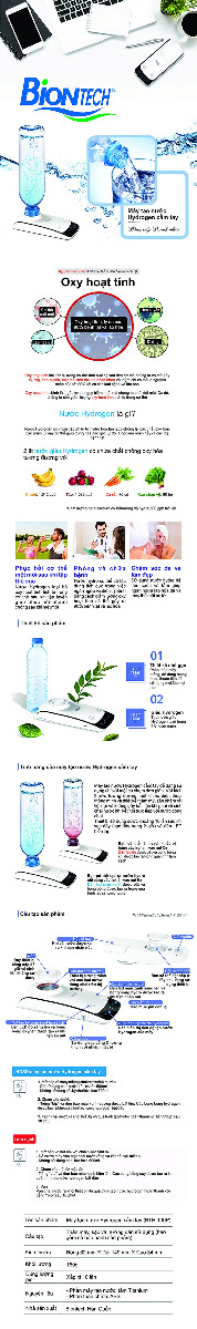 Thiết kế nhỏ gọn, sang trọng. Dễ dàng mang theo và thuận tiện sử dụng. Tạo ra nước Hydrogen tươi trong thời gian ngắn. Sạc điện qua cổng USB dễ dàng. Loại bỏ oxy hoạt tính, chăm sóc da và làm đẹp. Phục hồi cơ thể mệt mỏi sau khi làm việc, luyện tập. Nhập khẩu nguyên bộ từ Hàn Quốc